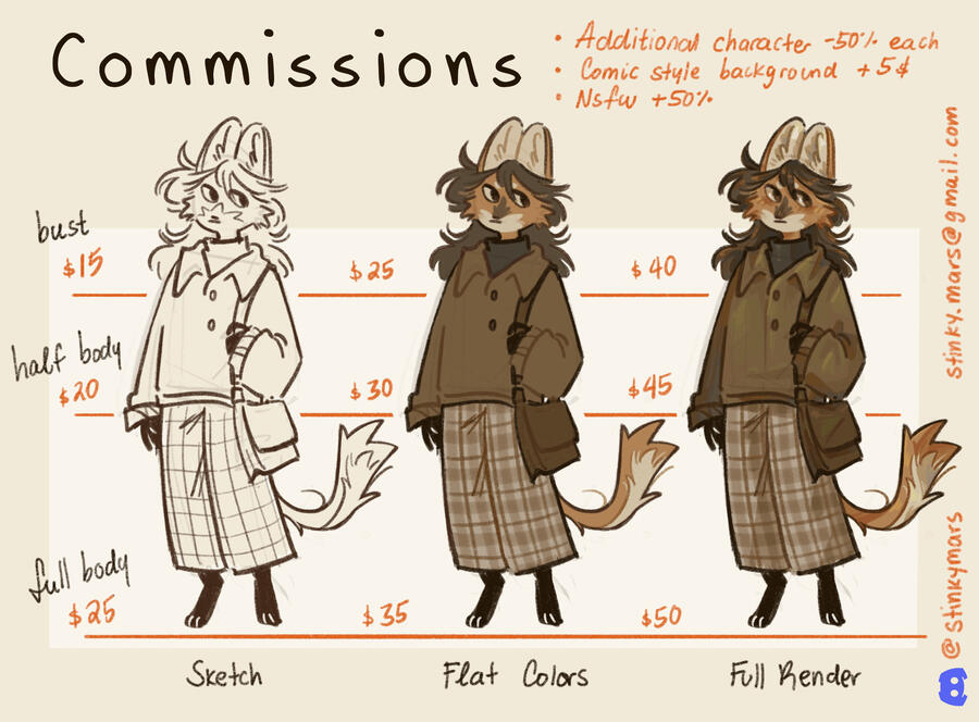 Please read this information carefully if you're considering taking a commission from me.Feel free to ask to see examples of my drawings of anything in particular that you need.You can contact me via dm or email.NO REFUNDS OF ANY KIND